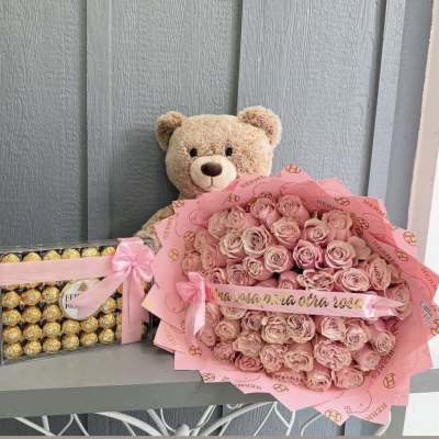 Price: $149.99 arrangement with 30 red roses, and pink oriental lilies Product Tags: Next-day Delivery