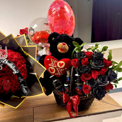 Price: $99.99 Special arrangement with red roses, small teddy bear, and 5 ballon’s Product Tags: Next-day Delivery