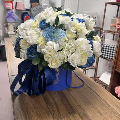 Price: $99.99 Floral arrangement in round base seasonal flowers and balloon Product Tags: Next-day Delivery
